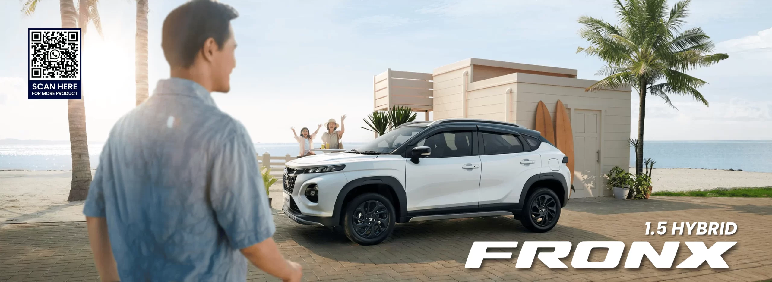 Desain coupe-style SUV Suzuki Fronx yang elegan dan dinamis, memikat perhatian dari pandangan pertama.
